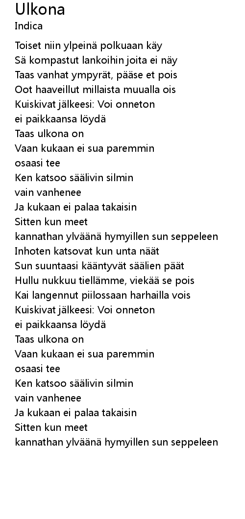 | 歌曲 | Ulkona |