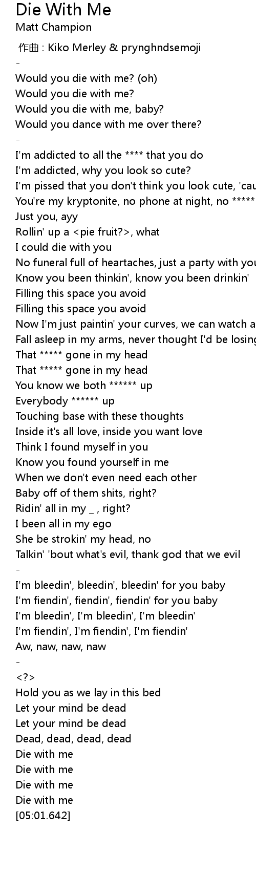 | [01:59.955] | I'm fiendin', I'm fiendin', I'm fiendin' |