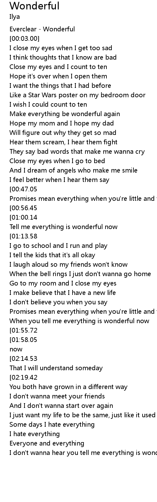 | [03:00.56] | I don't wanna hear you tell me everything is wonderful now |