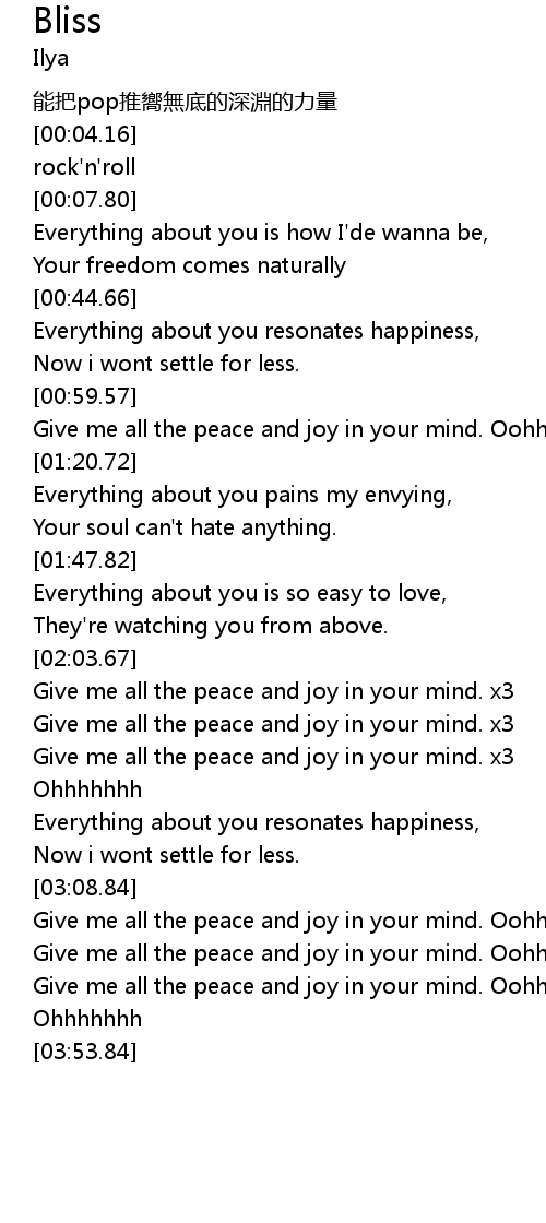 | [02:06.03] | Give me all the peace and joy in your mind. x3 |