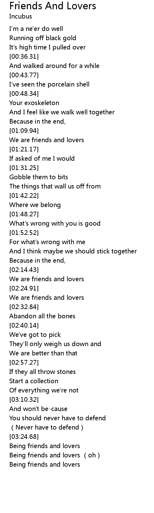 | [02:16.92] | We are friends and lovers |