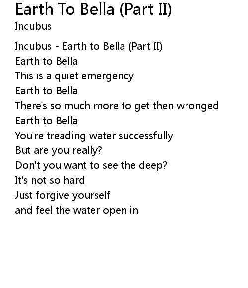 | [00:00.00] | Incubus - Earth to Bella (Part II) |