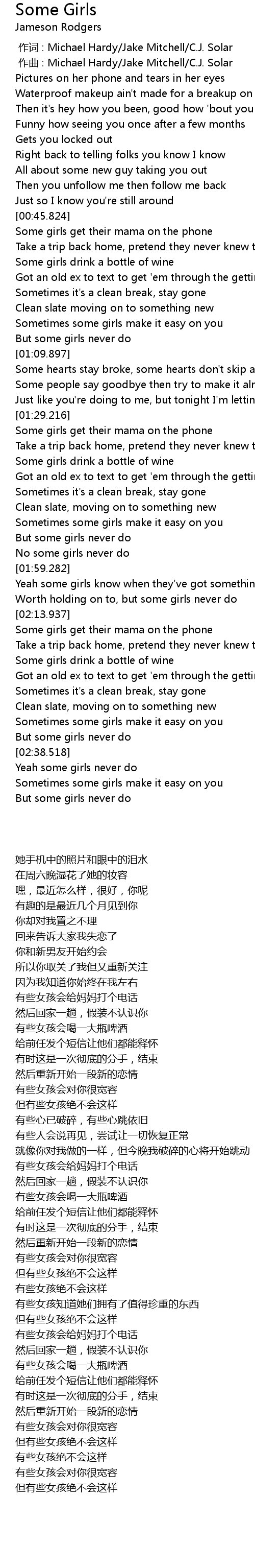| [00:01.000] | zuo qu : Michael Hardy Jake Mitchell C. J. Solar |
