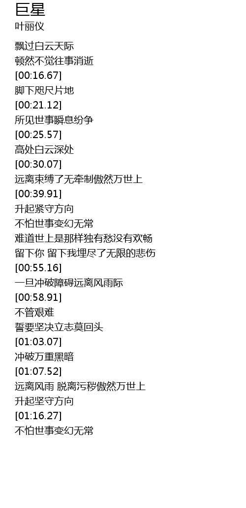 | [00:30.87] | 远离束缚了无牵制傲然万世上 |