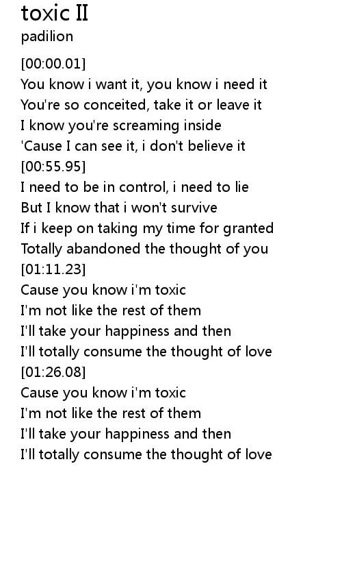 | [01:12.23] | Cause you know i'm toxic |