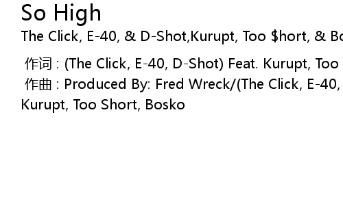 | [00:00.000] | 作曲 : Produced By: Fred Wreck/(The Click, E-40, D-Shot) Feat. Kurupt, Too Short, Bosko |