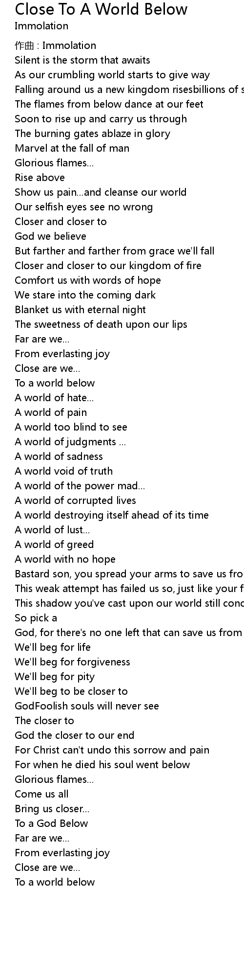 | Falling around us a new kingdom risesbillions of souls sinking and sinking | |