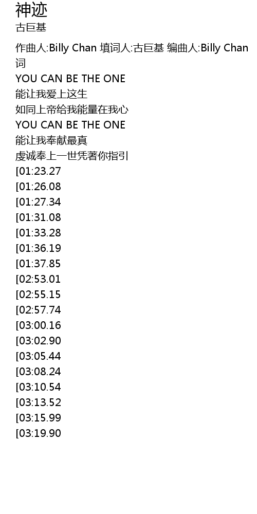 | [00:05.99] | 作曲人:Billy Chan 填词人:古巨基 编曲人:Billy Chan |