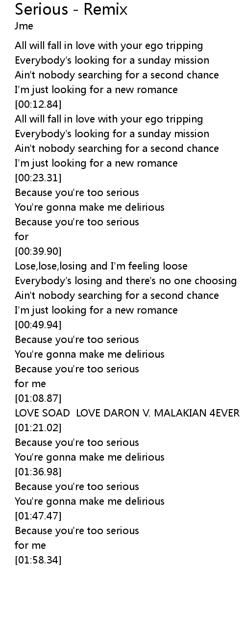 | [00:33.26] | Because you're too serious |