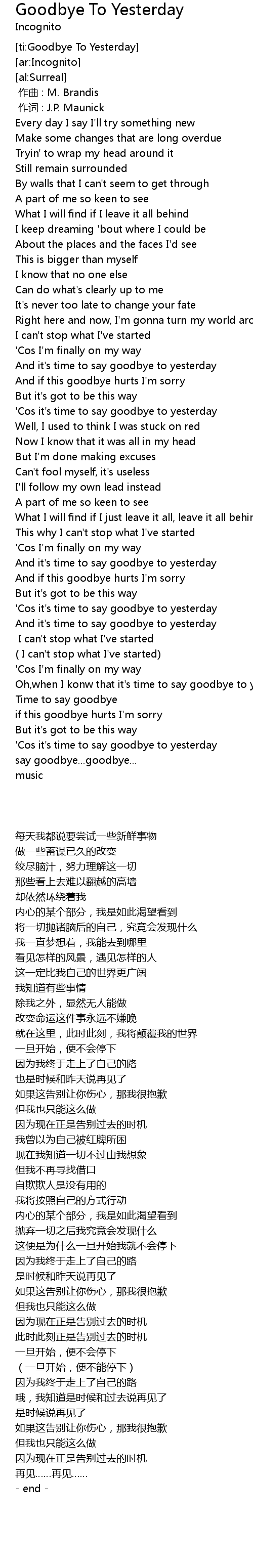 | [ti:Goodbye To Yesterday] | |