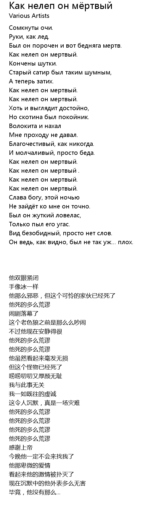 | 歌曲 | Как нелеп он мёртвый |