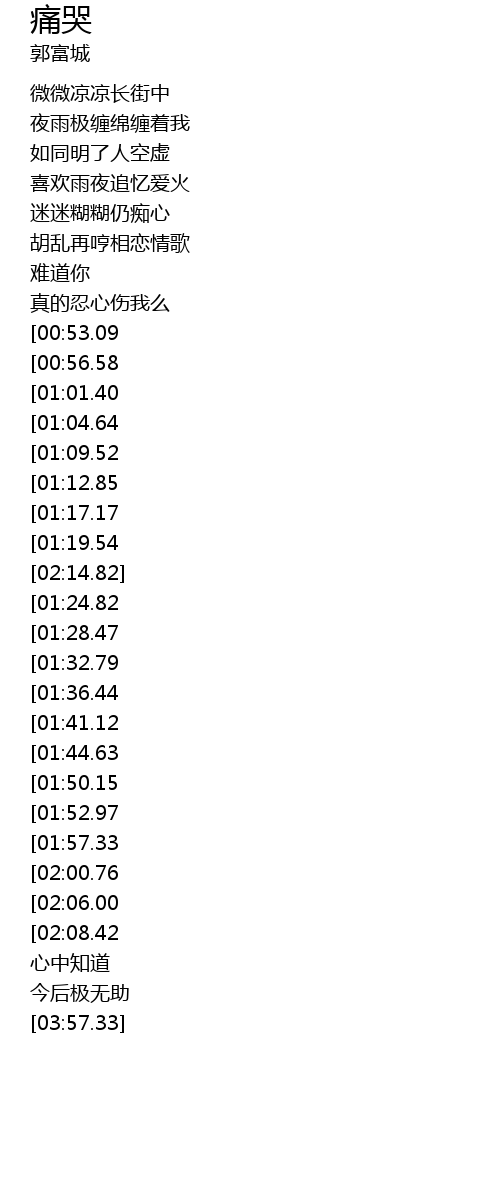 | [02:58.21][01:24.82] | 谁在痛哭 |