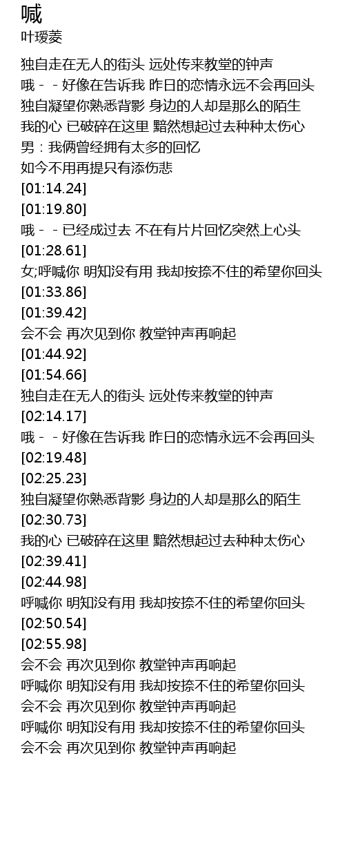 | [01:43.26] | 会不会 再次见到你 教堂钟声再响起 |