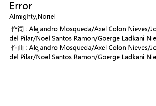 | [00:00.000] | 作曲 : Alejandro Mosqueda/Axel Colon Nieves/Jose Polanco/Eduardo del Pilar/Noel Santos Ramon/Goerge Ladkani Nieves |