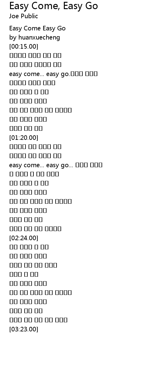 | [00:01.00] | Easy Come Easy Go |