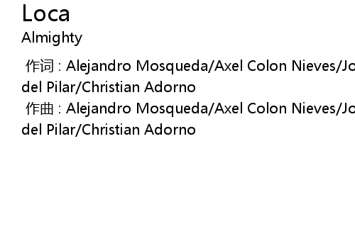 | [00:00.000] | 作词 : Alejandro Mosqueda/Axel Colon Nieves/Jose Polanco/Eduardo del Pilar/Christian Adorno |