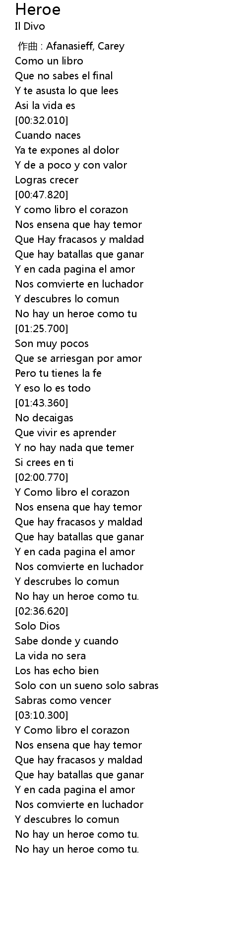 | [03:38.370] | No hay un heroe como tu. |