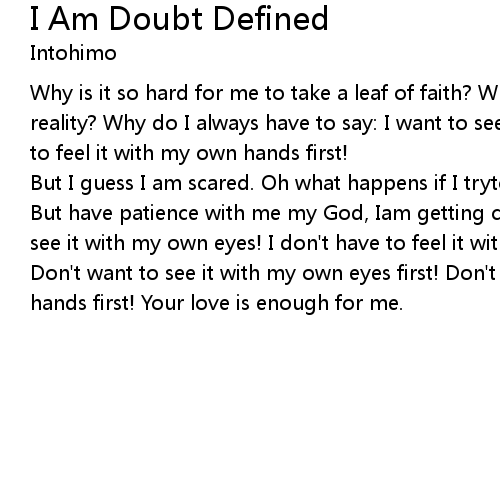 Why is it so hard for me to take a leaf of faith? Why can't I let go of my reality? Why do I always have to say: I want to see it with my own eyes! I want to feel it with my own hands first! |