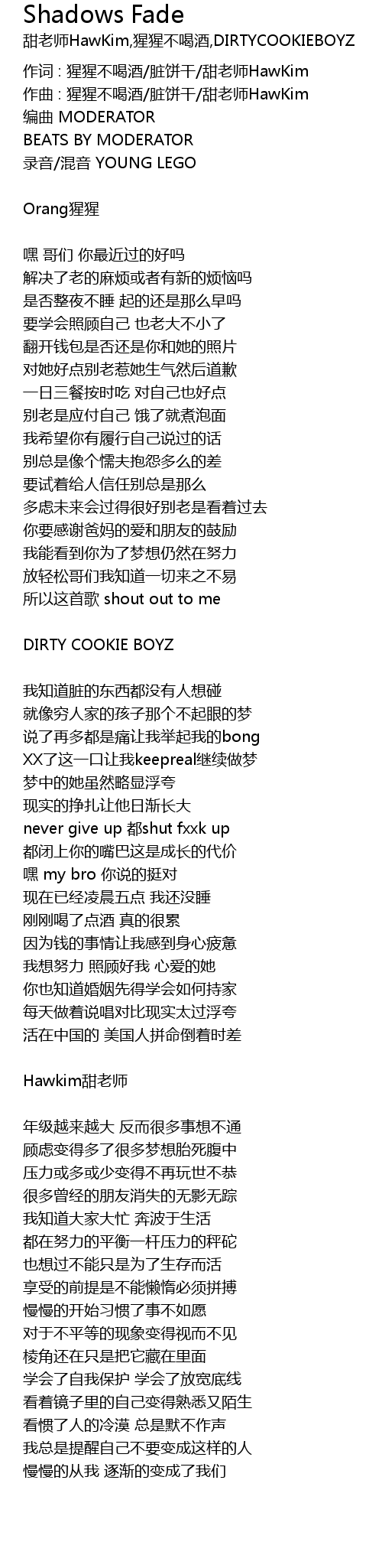 | 作词 : 猩猩不喝酒/脏饼干/甜老师HawKim | |