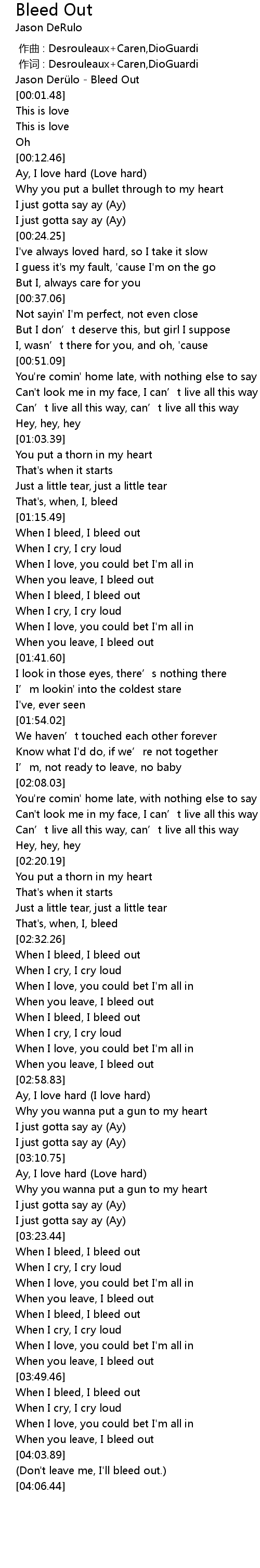 | [00:00.01] | Jason Derü lo Bleed Out |