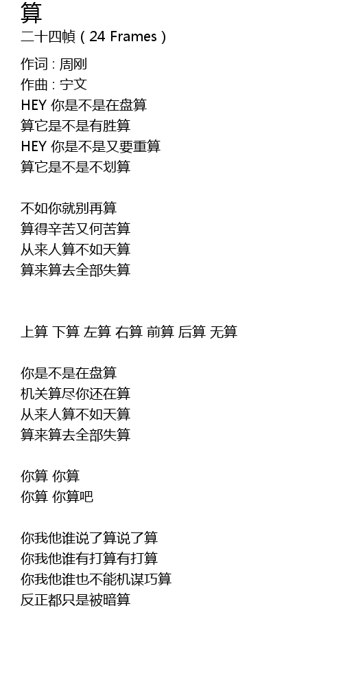 | 歌曲 | 算 |