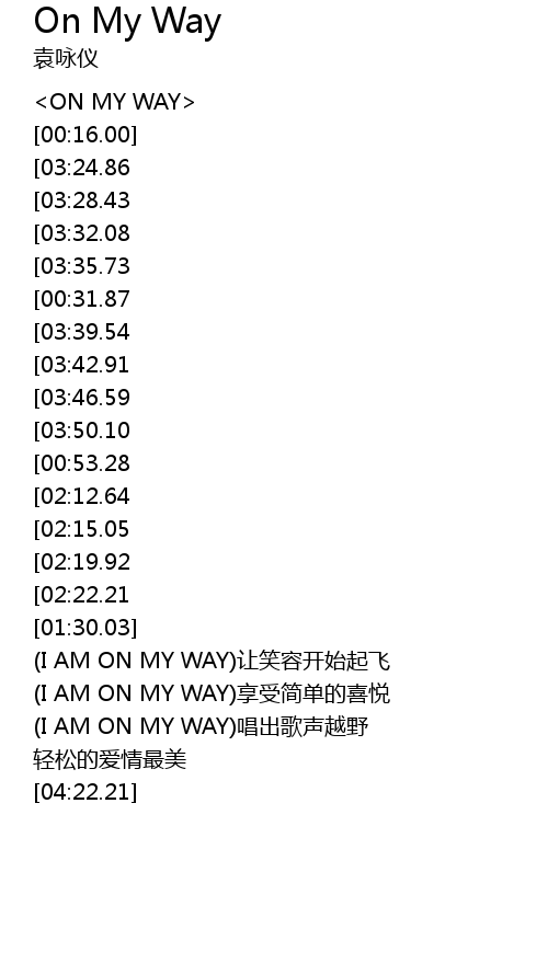 | [02:41.74] | I AM ON MY WAY rang xiao rong kai shi qi fei |