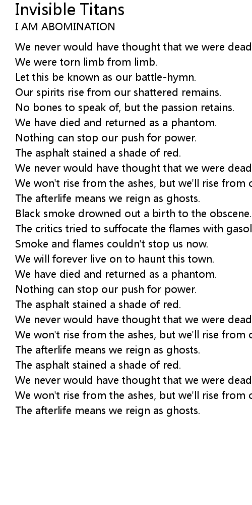 Invisible Titans 歌词
