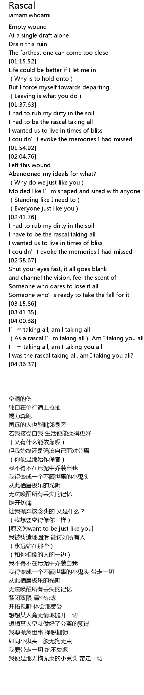 | [02:46.11] | I have to be the rascal taking all |