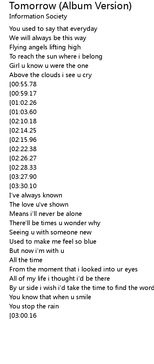 Tomorrow (Album Version) 歌词