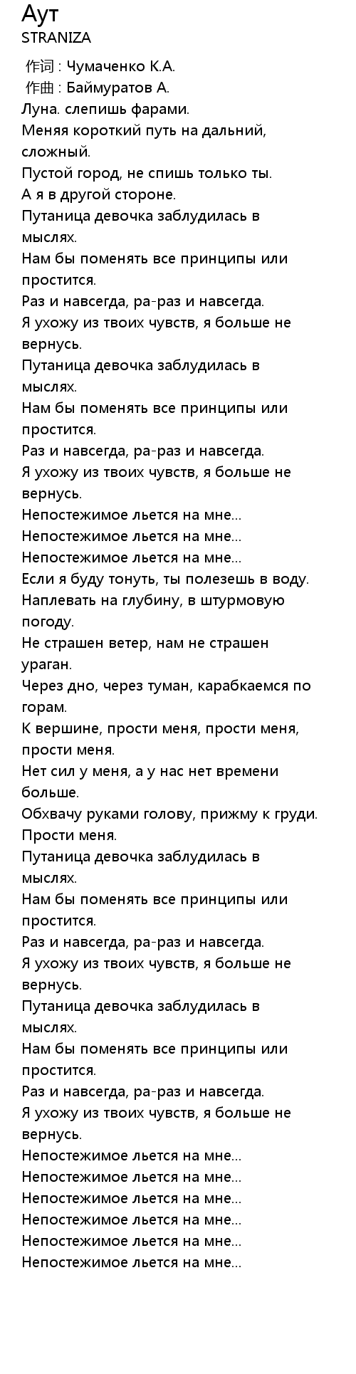 Аут 歌词