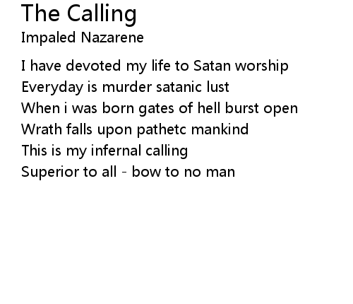 | This is my infernal calling | |