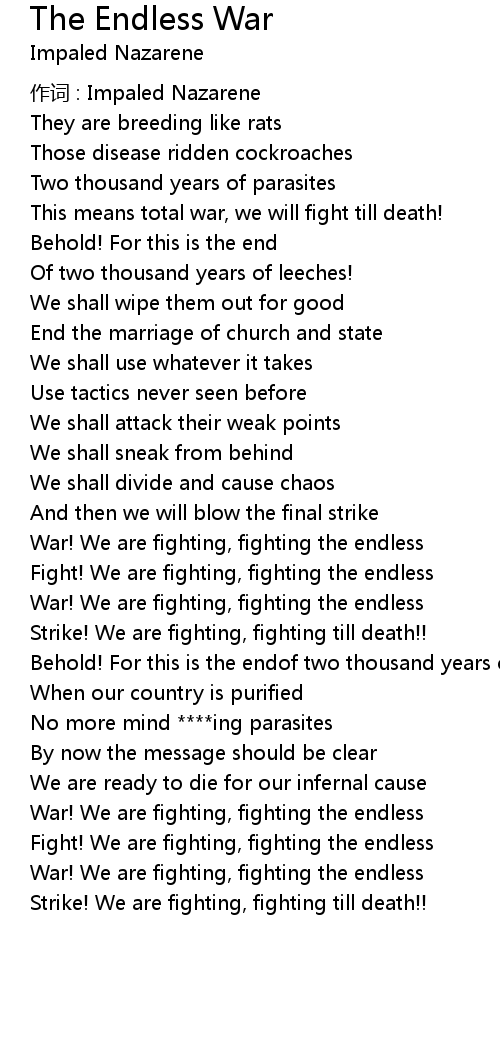| War! We are fighting, fighting the endless | |