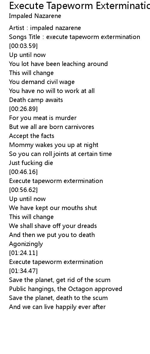 | [00:01.90] | Songs Title:execute tapeworm extermination |