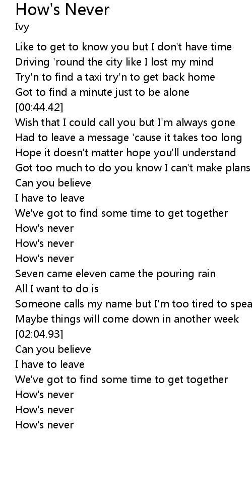 | [00:57.42] | Had to leave a message 'cause it takes too long |