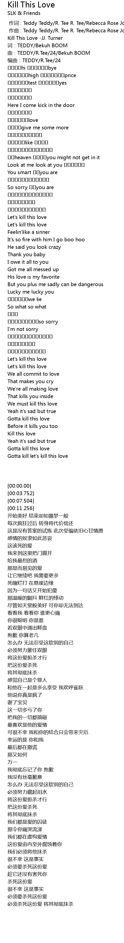 | [00:00.00] | Kill This Love -JJ. Turner |