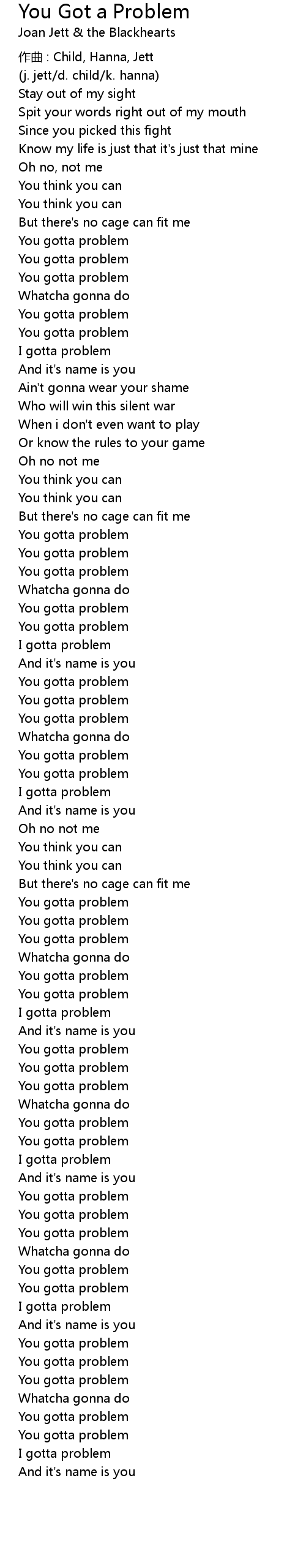 | 歌曲 | You Got a Problem |