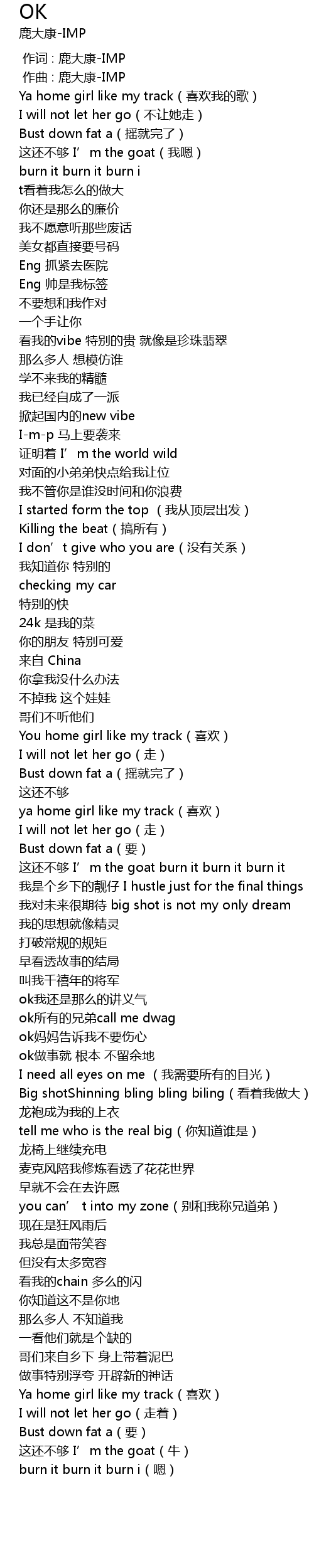 | [01:33.171] | 这还不够 I’m the goat burn it burn it burn it |