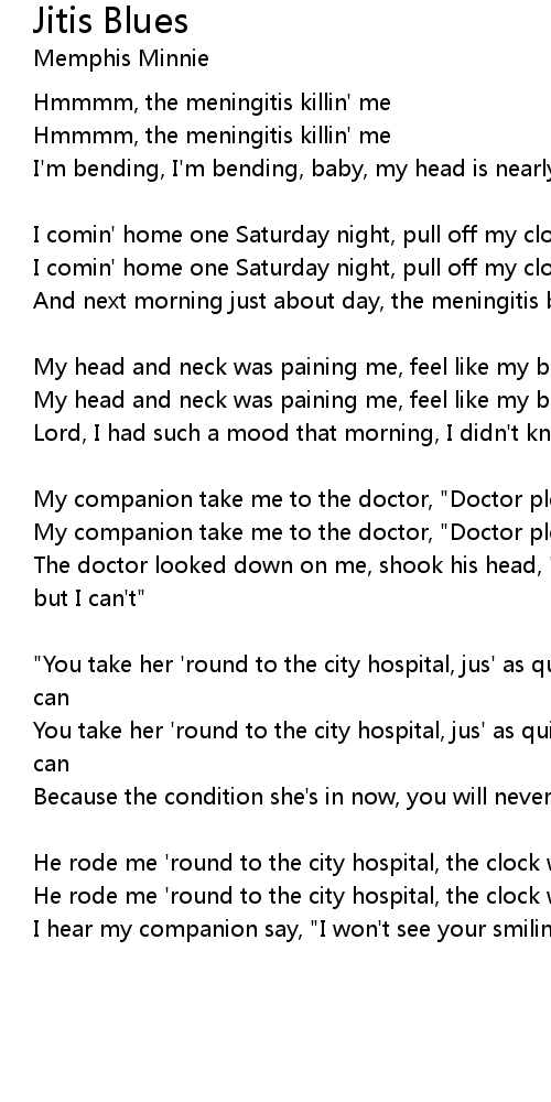 He rode me 'round to the city hospital, the clock was strikin' ten |