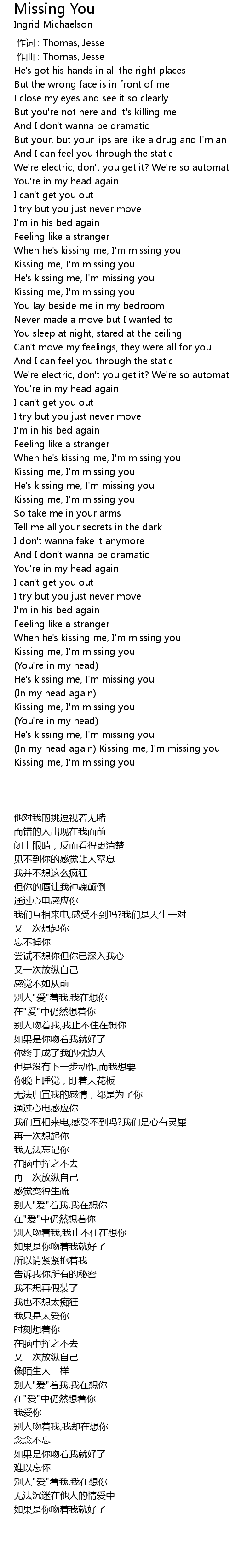 | [01:44.00] | When he's kissing me, I'm missing you |