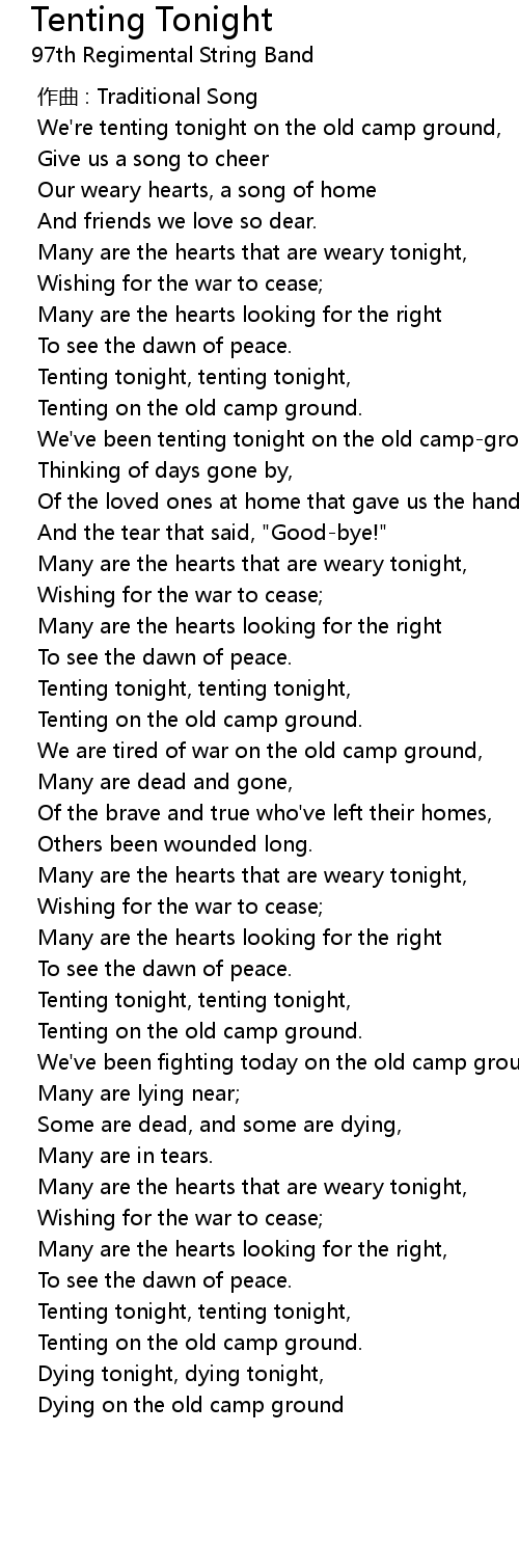 | [01:49.324] | Tenting tonight, tenting tonight, |