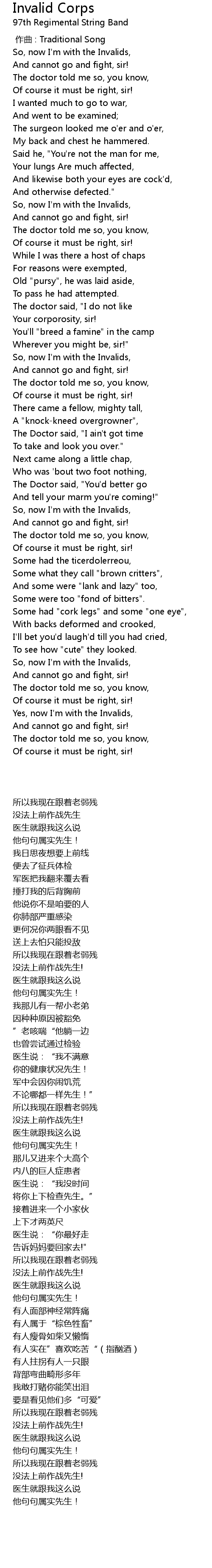 | [00:33.402] | So, now I'm with the Invalids, |