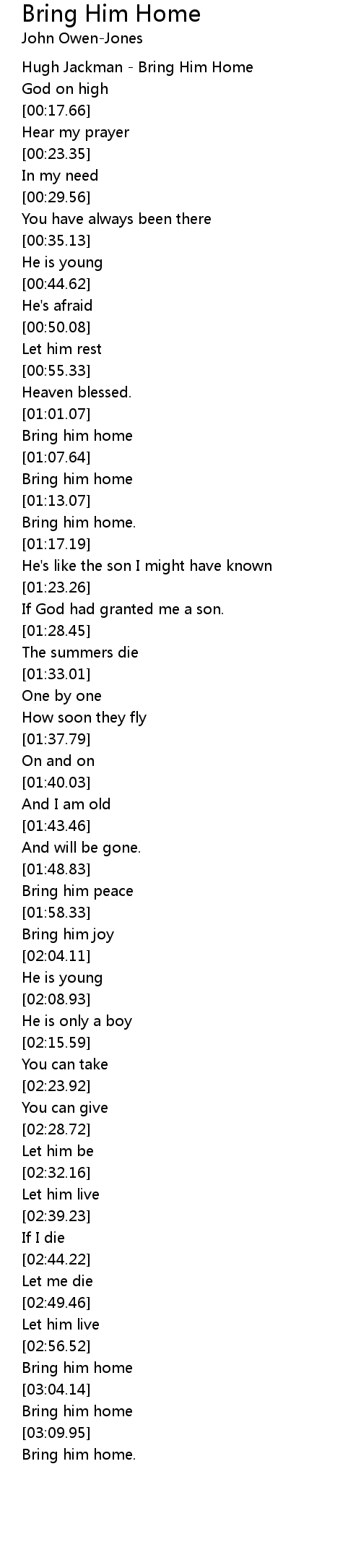 Bring him home |