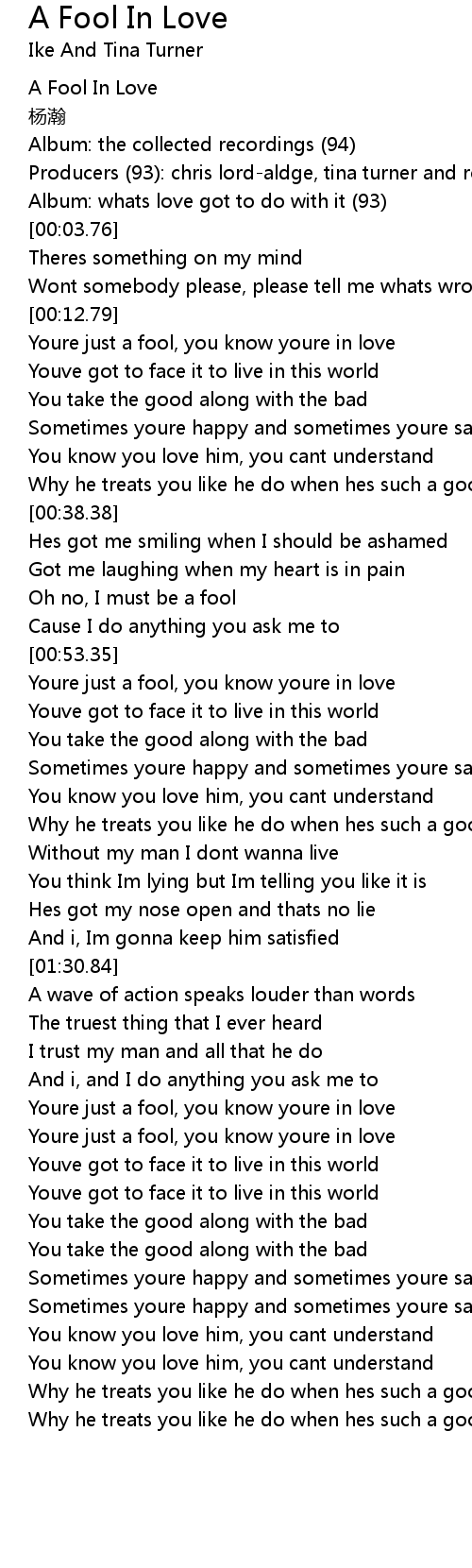 | [00:54.75] | Youre just a fool, you know youre in love |