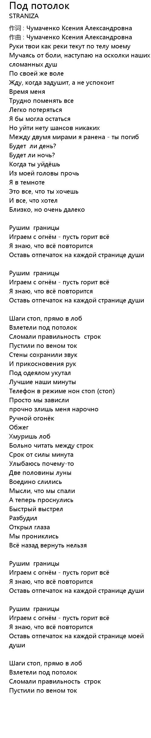 Под потолок 歌词