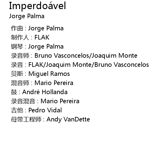 | [00:00.000] | 录音师 : Bruno Vasconcelos/Joaquim Monte |