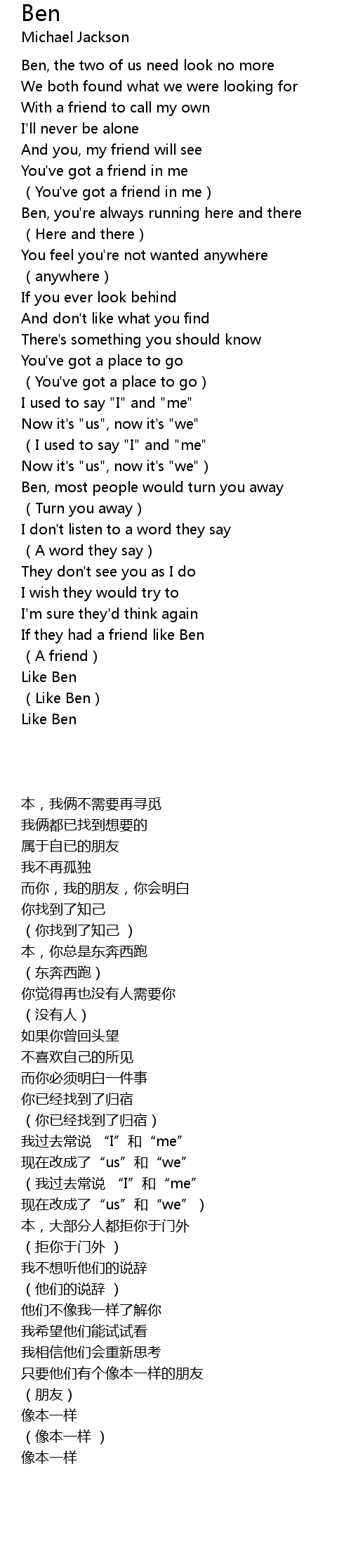 | [02:04.86] | 只要他们有个像本一样的朋友 |