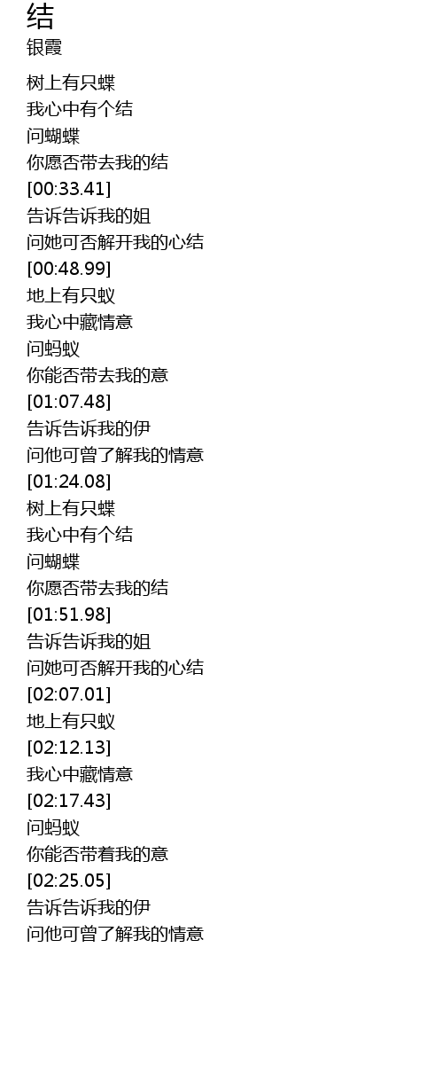 | [00:41.02] | 问她可否解开我的心结 |