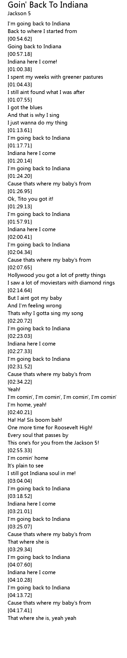 I'm going back to Indiana |