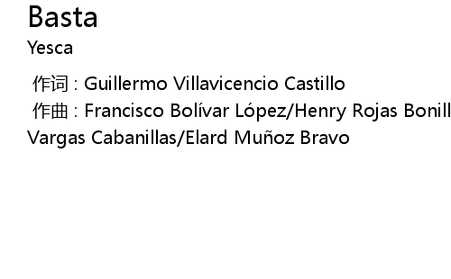 | [00:00.000] | 作曲 : Francisco Bolívar López/Henry Rojas Bonilla/Adrián Vargas Cabanillas/Elard Muñoz Bravo |