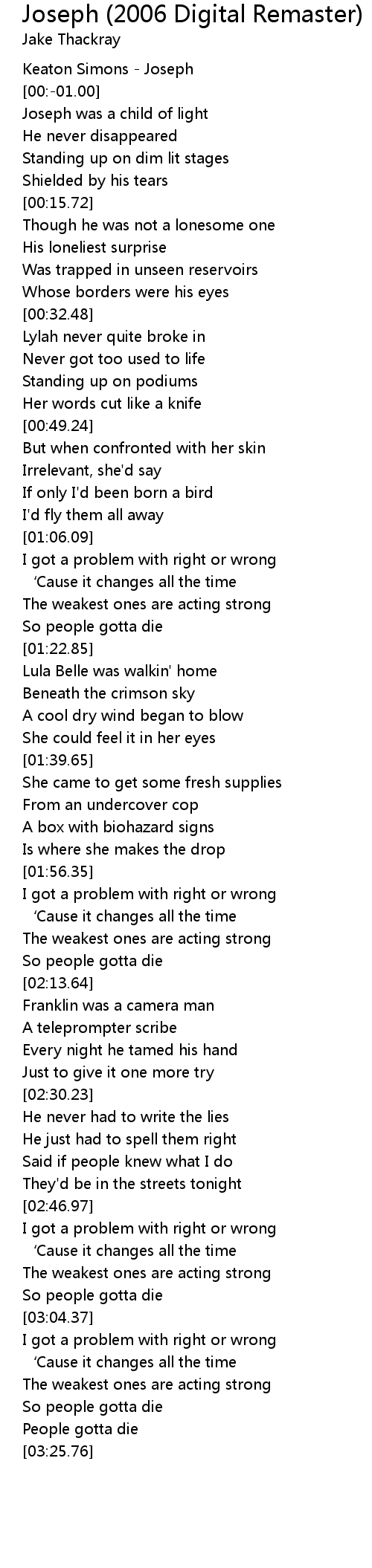 | 歌曲 | Joseph (2006 Digital Remaster) |